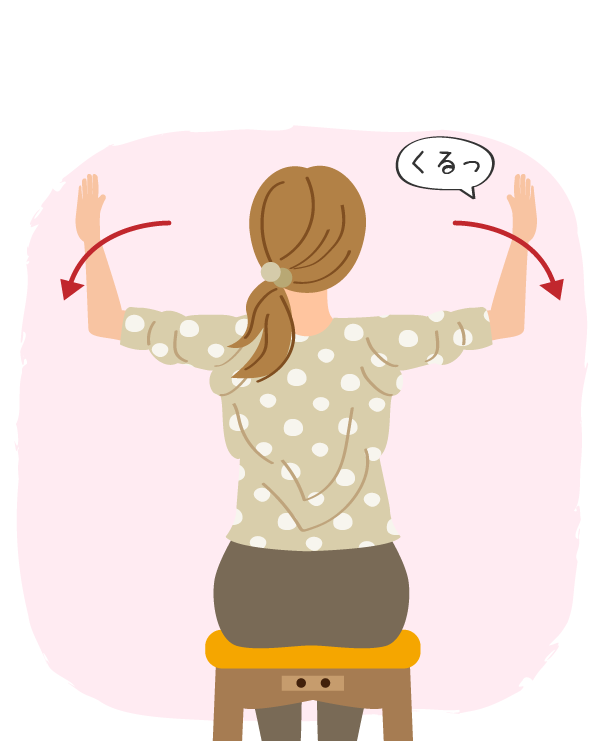 ①手のひらを内側にし、両腕を上げる。